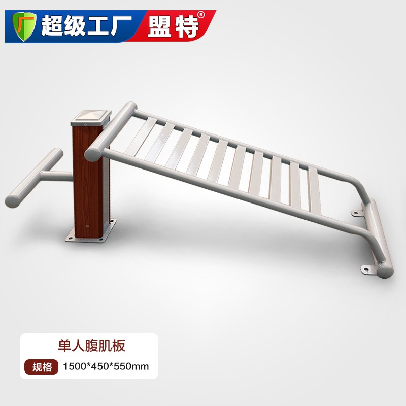 单人塑木腹肌板是一种常见的公园和社区健身路径器材,它被广泛用于腹肌训练和身体平衡训练。以下将对塑木材质、安装方法以及使用注意事项进行详细描述: